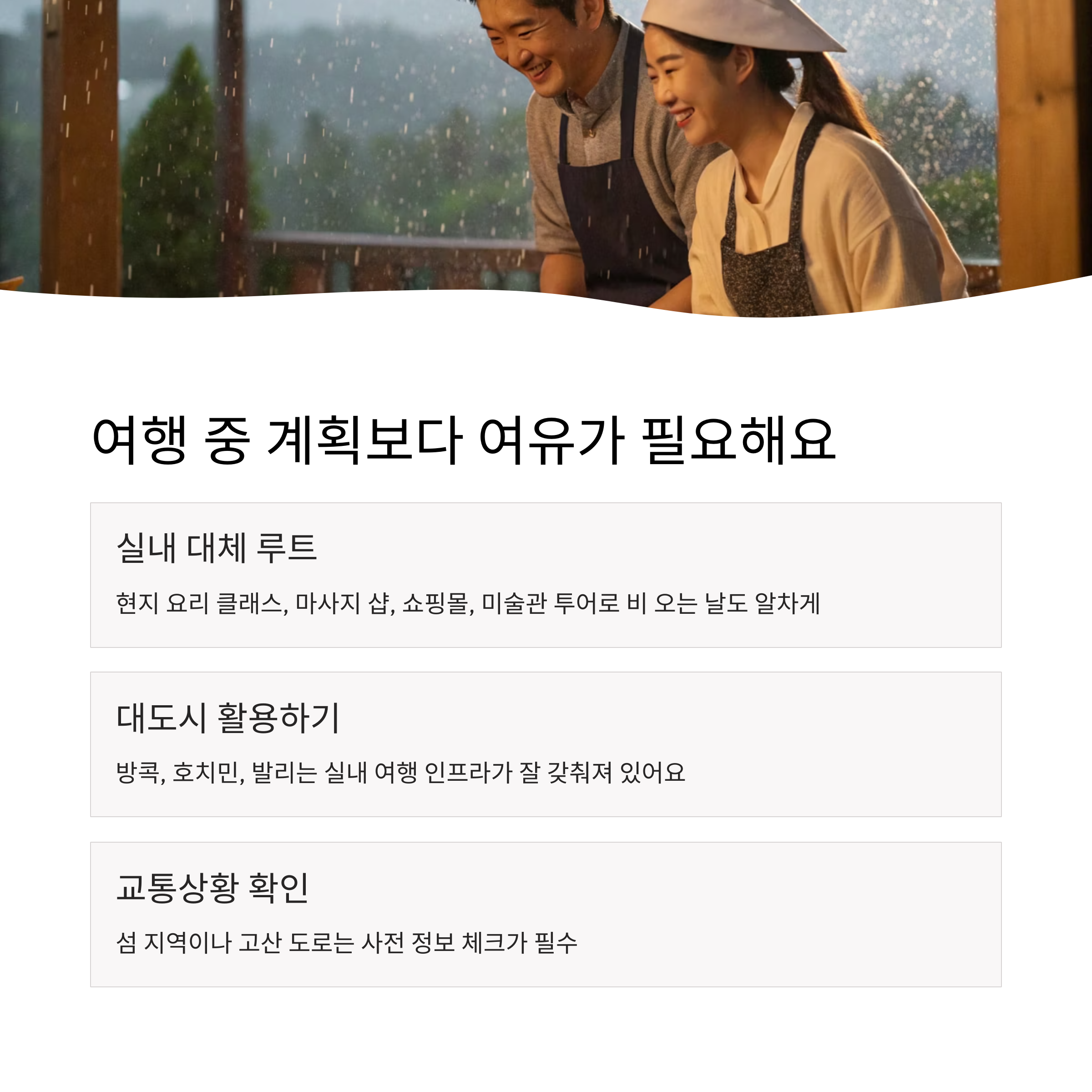 최근 여행자들의 우기 여행 후기를 참고하는 것도 좋아요.