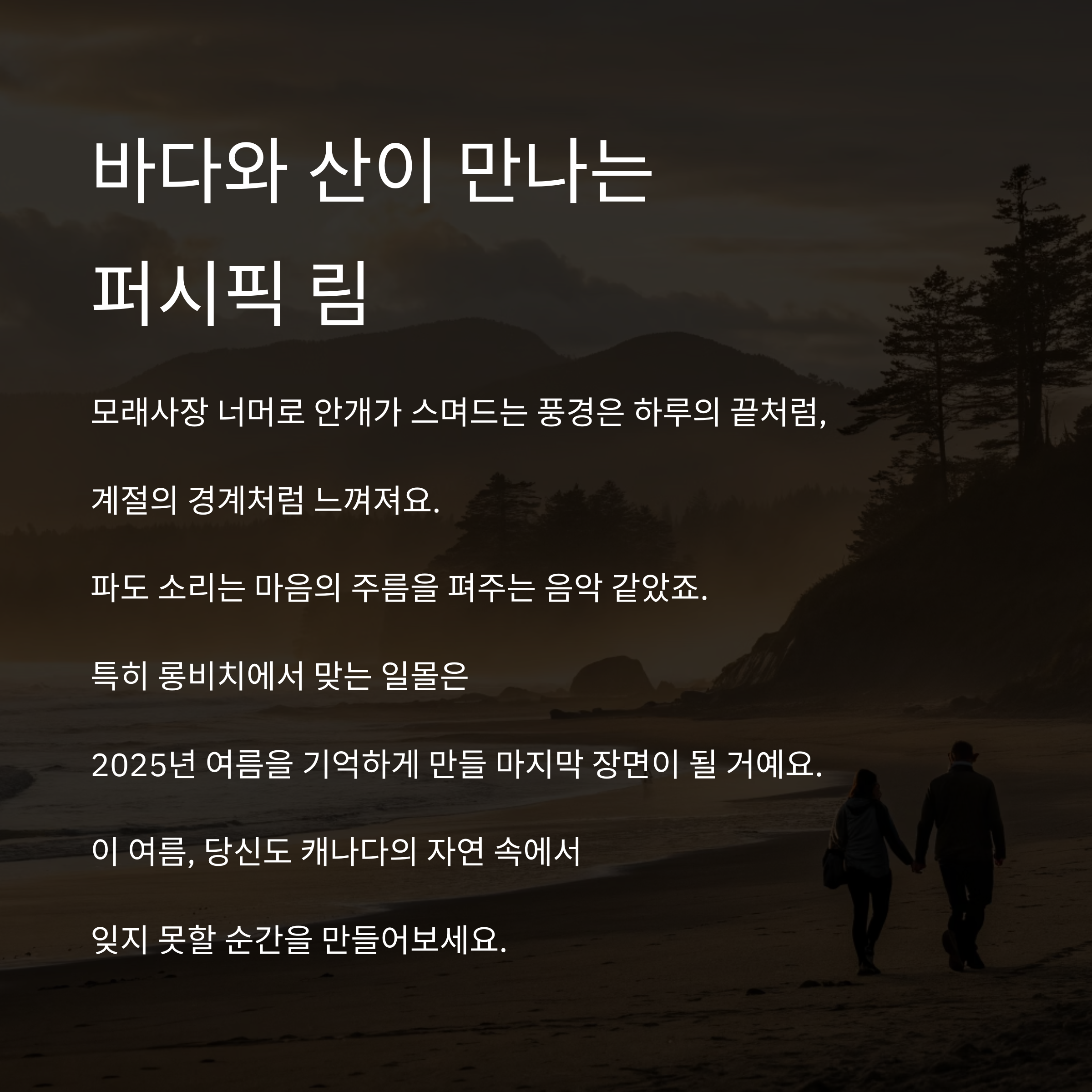 - 퍼시픽 림 국립공원: 롱비치 일몰, 고래 관찰
