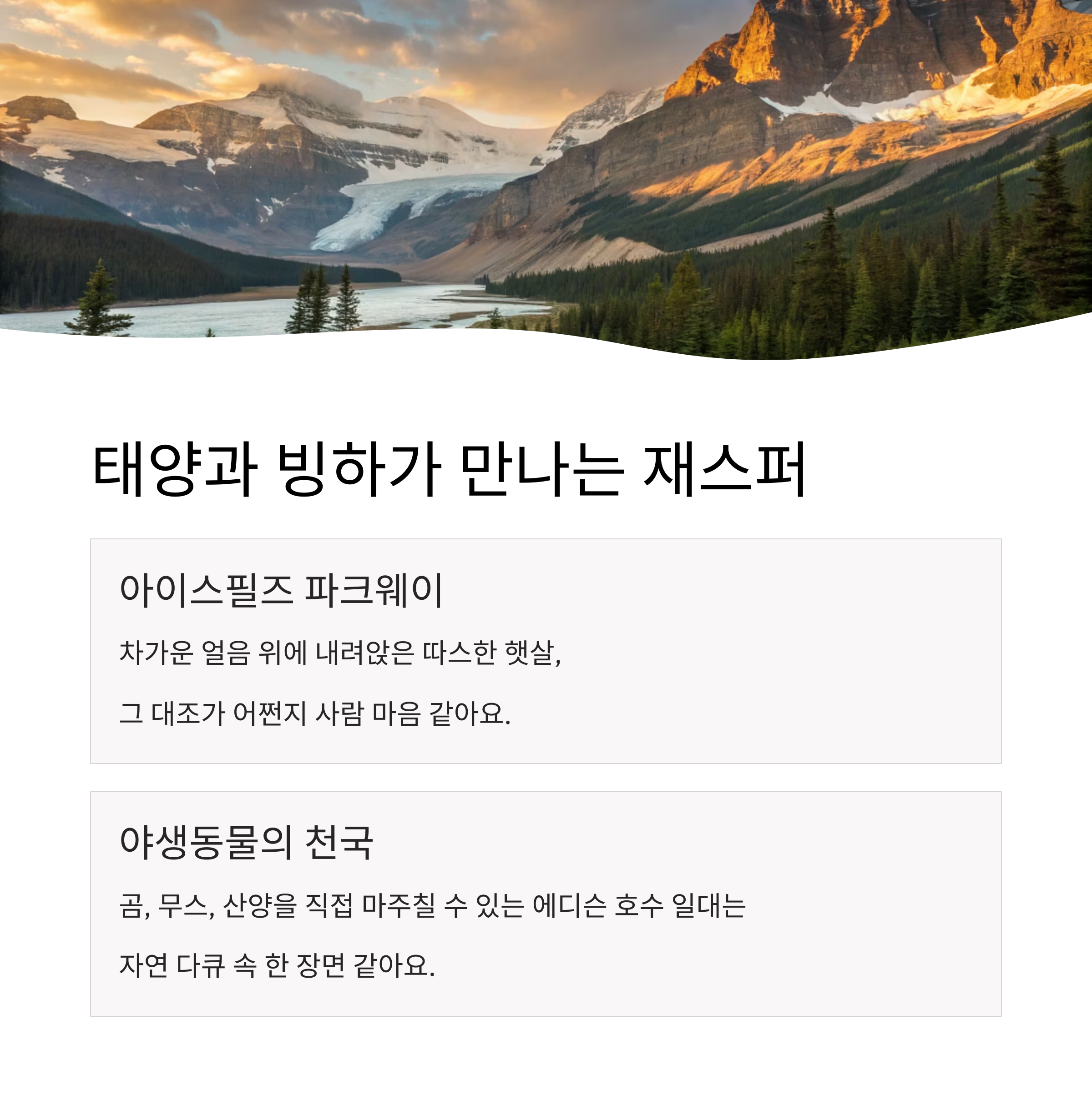 재스퍼는 빙하와 야생동물의 천국이에요.