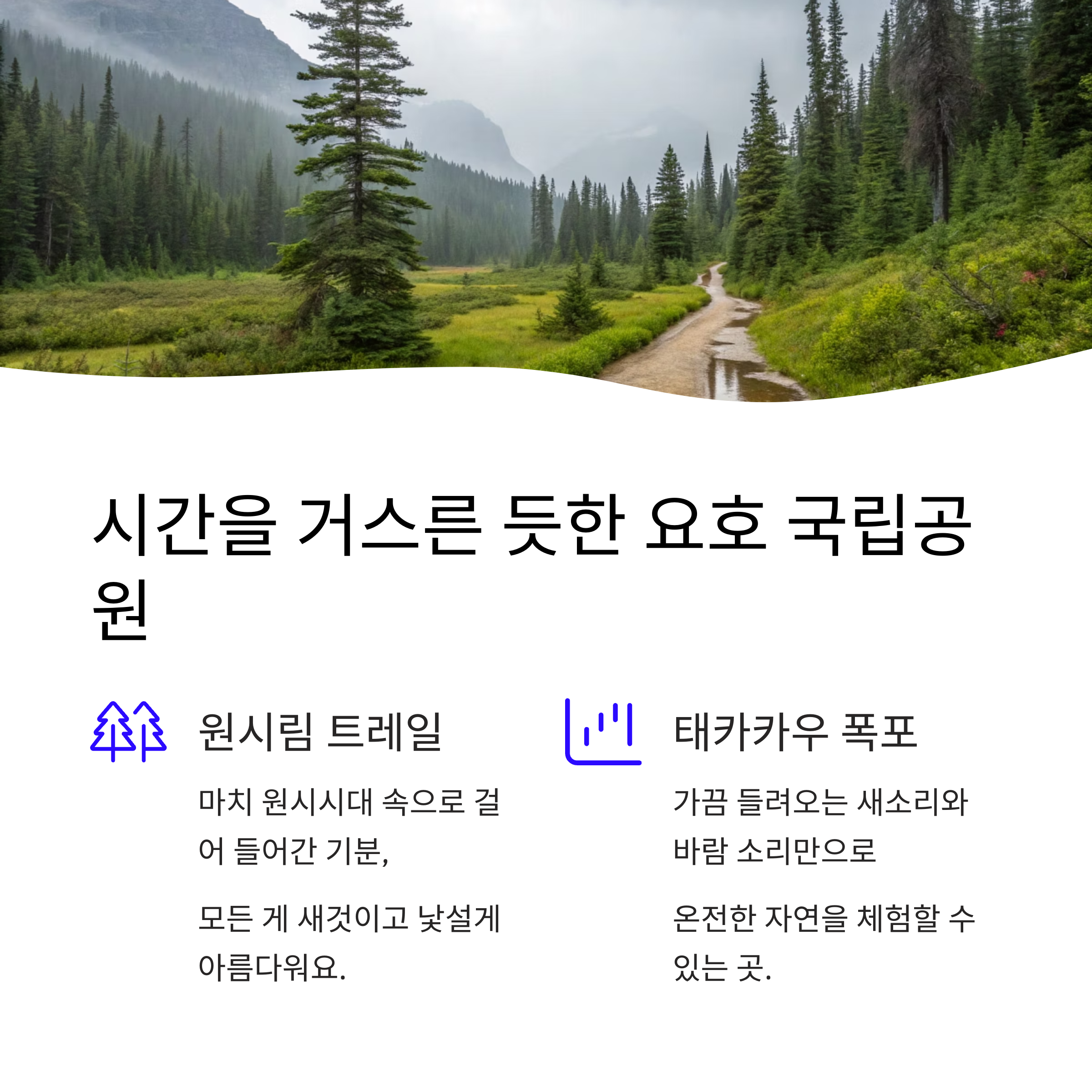 - 요호 국립공원: 태카카우 폭포, 원시림 트레일
